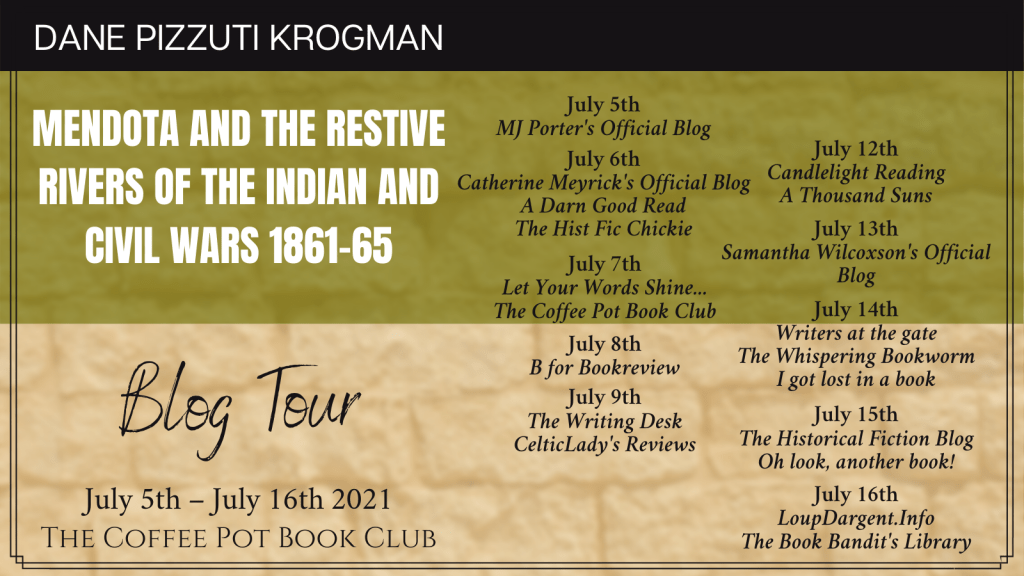 Today, I’m pleased to be sharing an excerpt from Dane Pizzuti Krogman’s novel Mendota and the Restive Rivers of the Indian and Civil Wars 1861-65 as part of a blog tour hosted by The Coffee Pot Book Club.