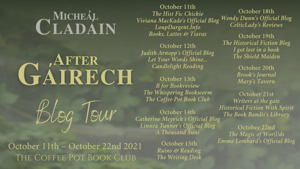 Today I’m delighted to be sharing an excerpt from Micheál Cladáin’s newly released novel After Gáirech as part of a blog tour hosted by The Coffee Pot Book Club. After Gáirech is the third book in Micheál’s series The Milesians.