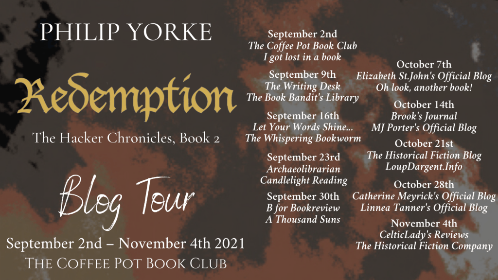 Today I’m delighted to be sharing an excerpt from Philip Yorke’s novel Redemption as part of a blog tour hosted by The Coffee Pot Book Club. Redemption is the second book in Philip’s series The Hacker Chronicles, set during the First English Civil.