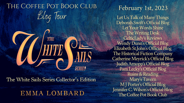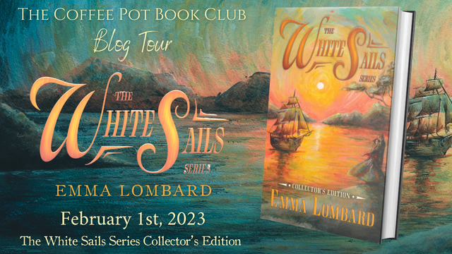Today I’m delighted to have Emma Lombard on my blog talking about her award-winning The White Sails Series novel as part of a blog tour hosted by The Coffee Pot Book Club. The White Sails Series has icy winter storms, opportunistic mercenaries, uncharted lands, and a colourful crew of sailors all lashed together by an epic love story. The collector’s edition includes all four books in the series.