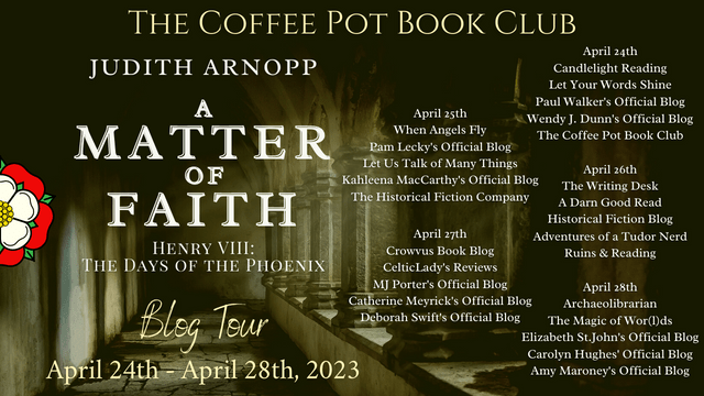 Today I’m delighted to be introducing Judith Arnopp’s newly released novel A Matter of Faith: Henry VIII, the Days of the Phoenix as part of a blog tour hosted by The Coffee Pot Book Club. A Matter of Faith is the second book of Judith’s series, The Henrician Chronicle.