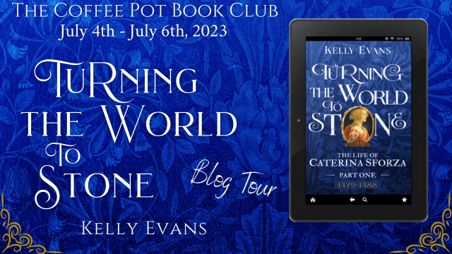 Today I’m delighted to be sharing an excerpt from Kelly Evans’s recently released novel, Turning the World to Stone – The Life of Caterina Sforza Part One 1472 to 1488, as part of a blog tour hosted by The Coffee Pot Book Club.
