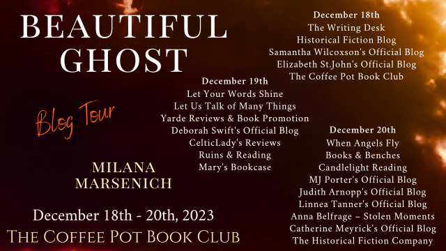 Today I’m delighted to be sharing an snippet from Milana Marsenich’s novel, Beautiful Ghost, as part of a blog tour hosted by The Coffee Pot Book Club.