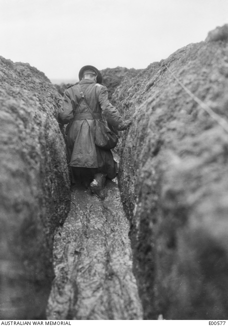 Six days later, marching through congested military traffic, they arrived at Bernafay Wood, four miles away. Here it was worse than Fricourt. The area was a mess of half-obliterated trenches and water-filled shell holes. The men excavated possies and dug-outs in the slopes of the hill and covered them with their waterproof sheets. Rain made its way in down the sides of the sheets and the bottom of the dug-outs turned to slimy mud. Sometimes the dugouts fell in at night. As at Fricourt, many of the men were part of large working parties, out in the wet and cold all day, constructing and repairing roads. To make matters worse, they were not receiving regular consignments of socks from the Australian Comforts Funds so many men were wet-footed for up to ten days.